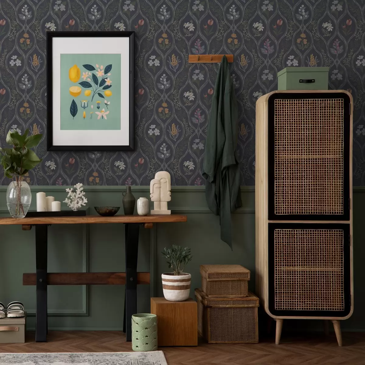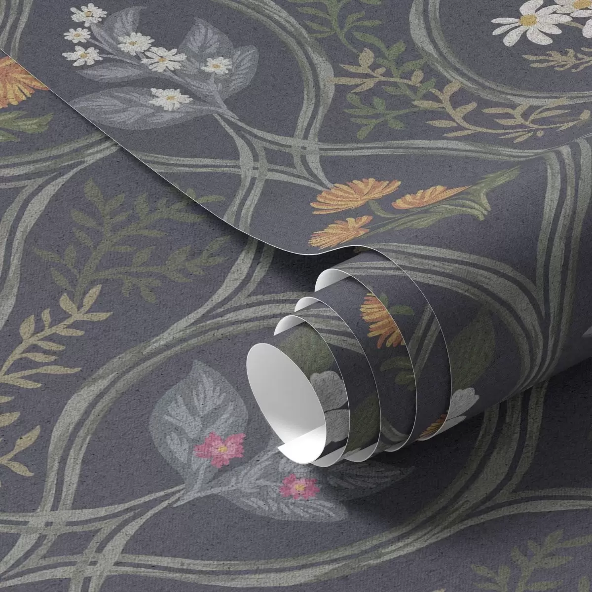 Tapetai Tamsus senovinis rėmas su spalvingomis sodo gėlėmis Nr. a00454