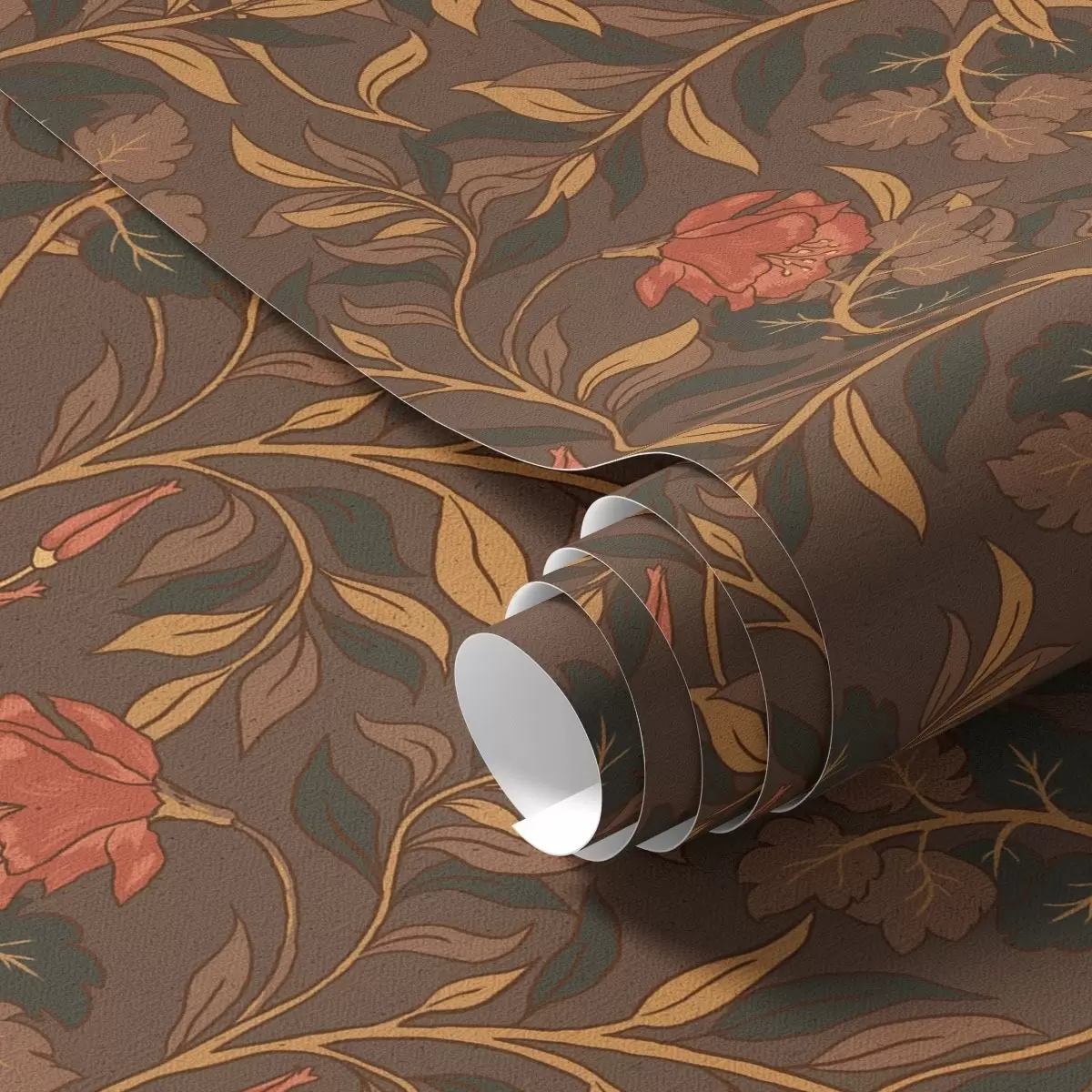 Tapetai Žydinčios terakotos šakos rudame fone Nr. a00460