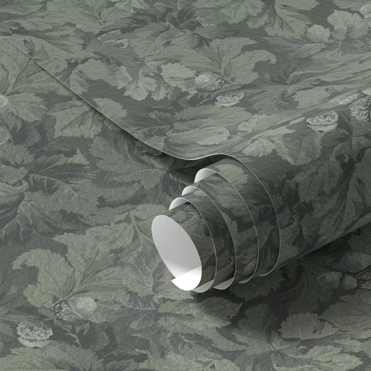 Tapetai Tamsios tekstūros lapai su tamsiai žalios spalvos gilės Nr. a00461