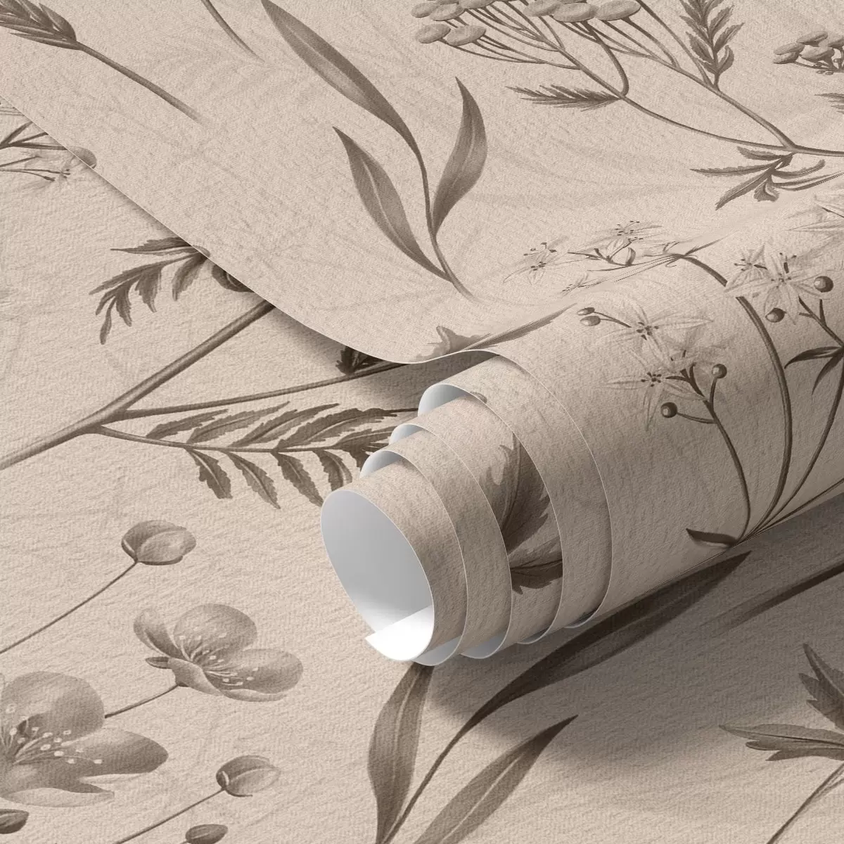 Tapetai Geltonos gėlės ir pilkai rudų tonų žaluma Nr. a00472v1
