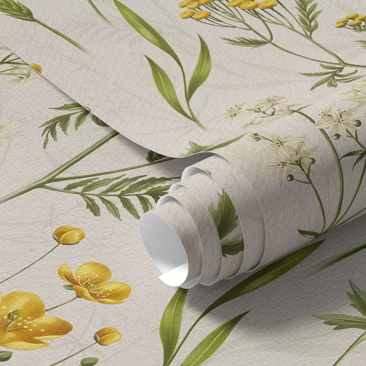 Tapetai Geltonos gėlės ir žaluma smėlio spalvos fone Nr. a00472v2