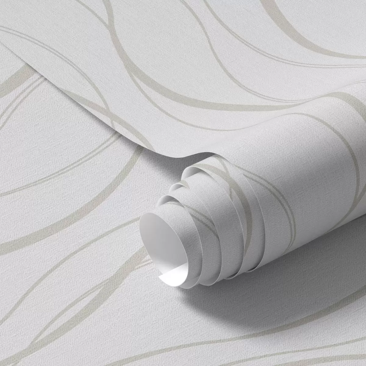 Tapetai Abstrakčios banguotos smėlio spalvos linijos baltame fone Nr. a00480