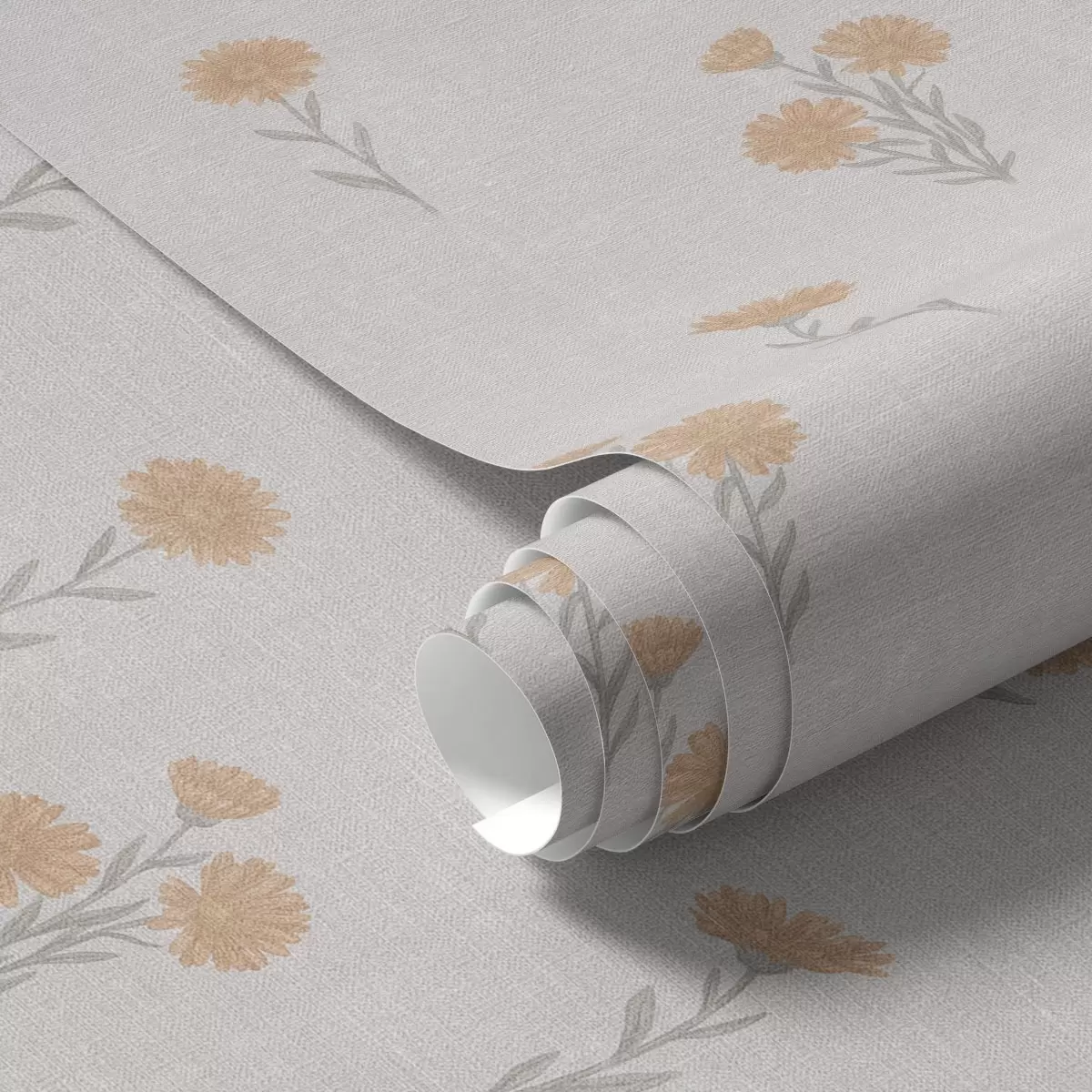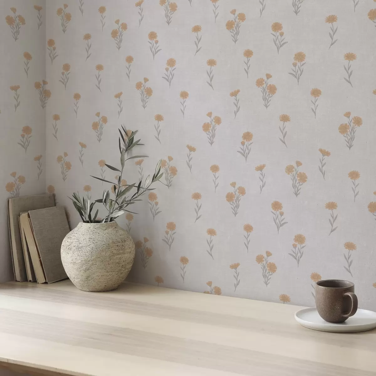 Tapetai Mažos oranžinės gėlės šviesiai pilkame fone Nr. a00486