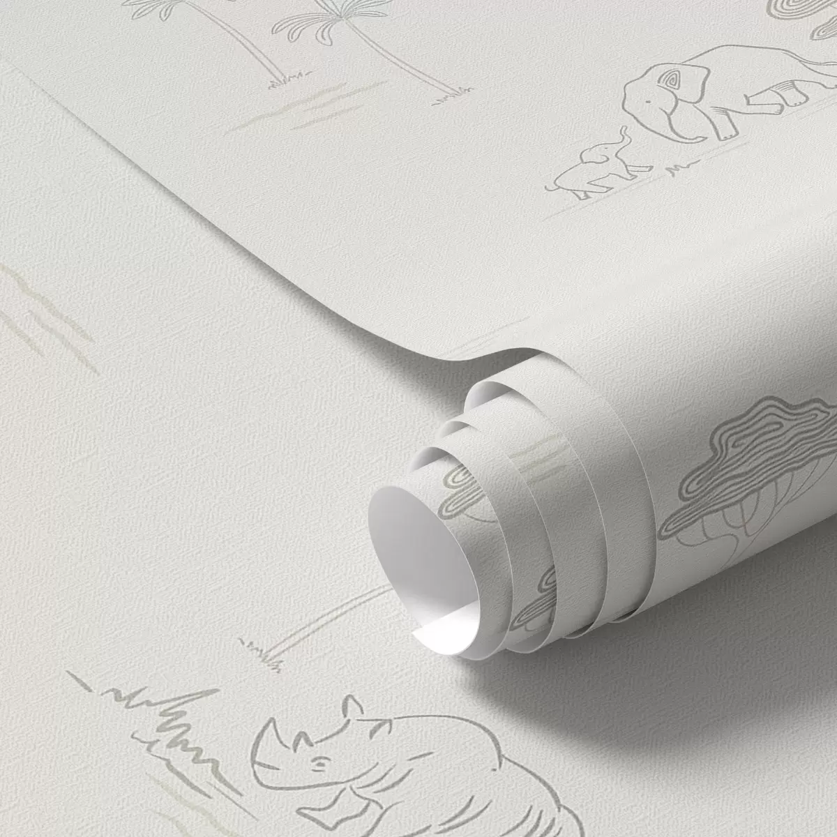 Tapetai Minimalistinis safaris: drambliai, raganos, leopardai ir palmių giraitės Nr. a00492