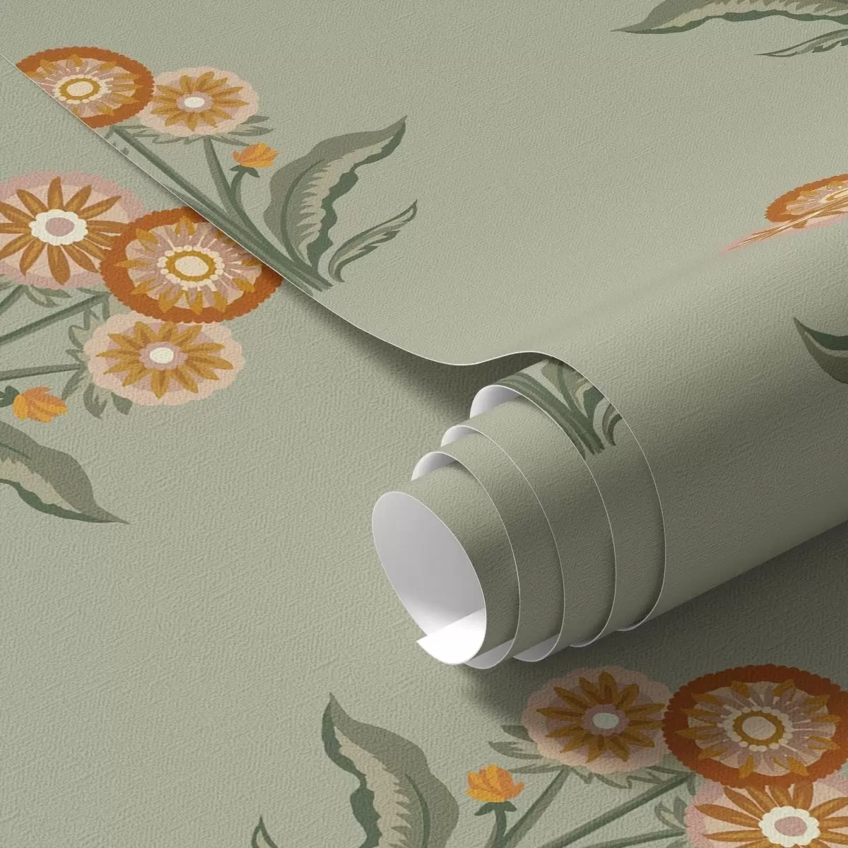 Tapetai Stilizuotos gėlės ant alyvuogių fono, šiltos spalvos Nr. a00494v2