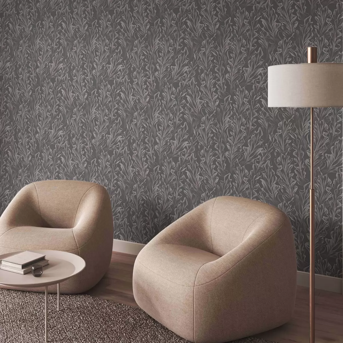 Tapetai Tekančios lapų bangos ant grafito fono, didelis kontrastas Nr. a00495v1