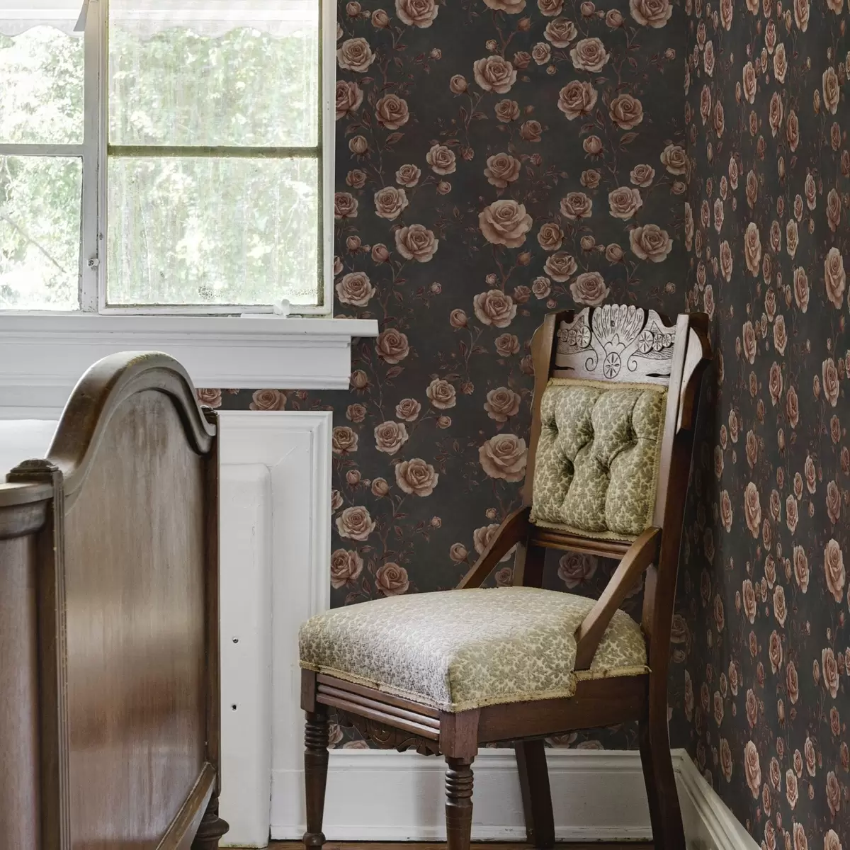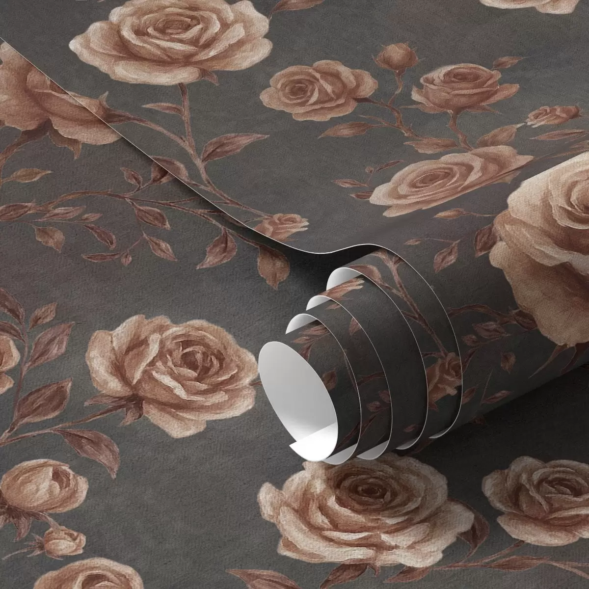 Tapetai Vintage rožės ant grafito fono, terakotos spalvų paletė Nr. a00497v1