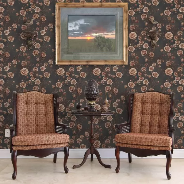 Tapetai Vintage rožės ant grafito fono, terakotos spalvų paletė Nr. a00497v1