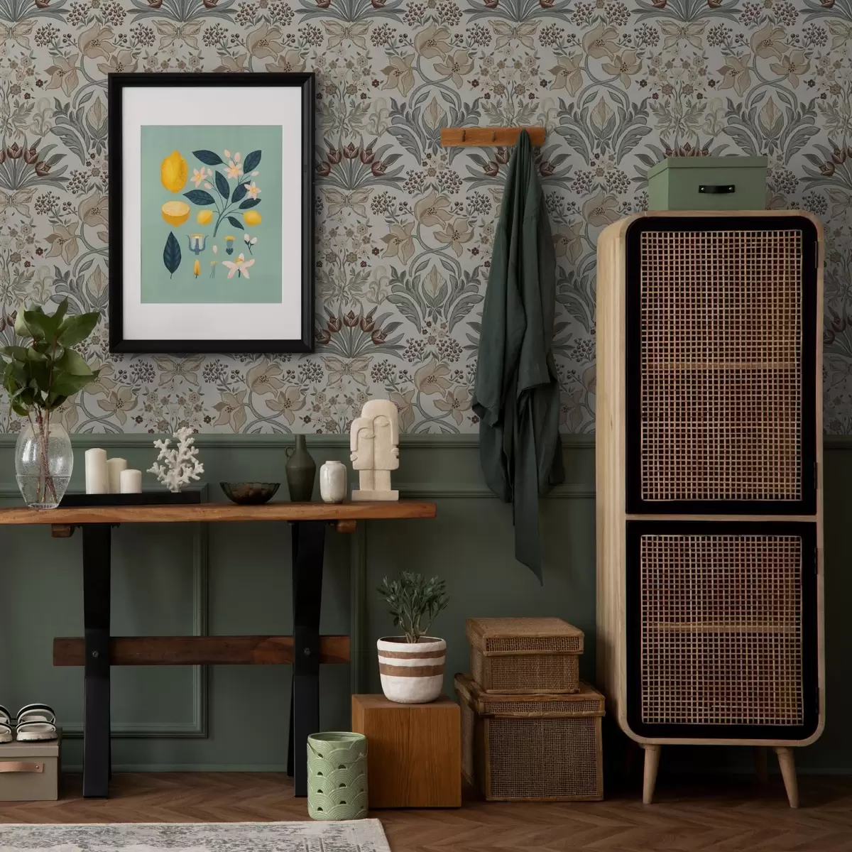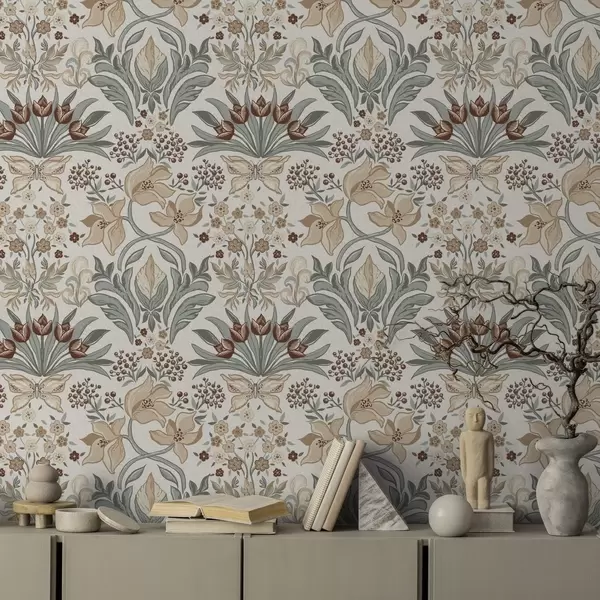 Tapetai Dekoratyvinės lelijos ir drugelis ant kreminės spalvos fono Nr. a00500