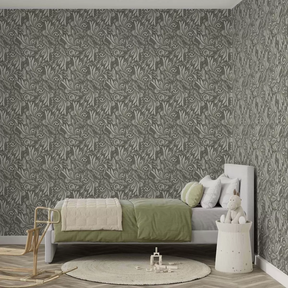 Tapetai Akanto lapai alyvuogių-smėlio spalvų paletėje Nr. a00501