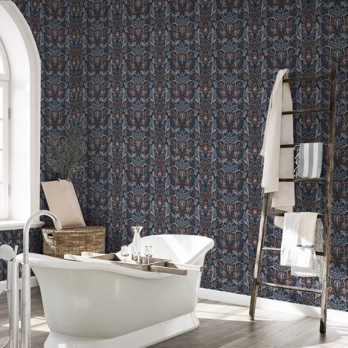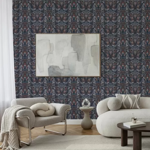 Tapetai Liaudies ornamentas su paukščiais, tamsiai mėlynos spalvos Nr. a00502v1
