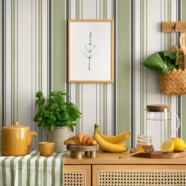 Tapetai Baltas fonas su žaliomis ir juodomis juostelėmis Nr. a00520