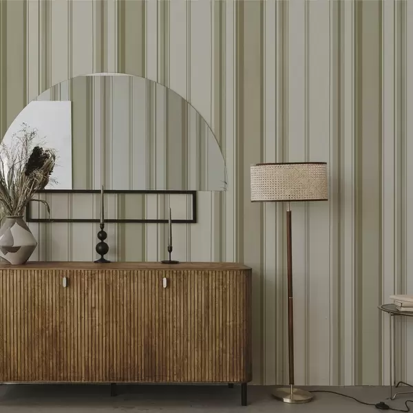 Tapetai Kreminis fonas su įvairaus pločio pilkai smėlio spalvos juostelėmis Nr. a00521