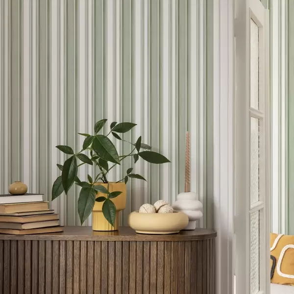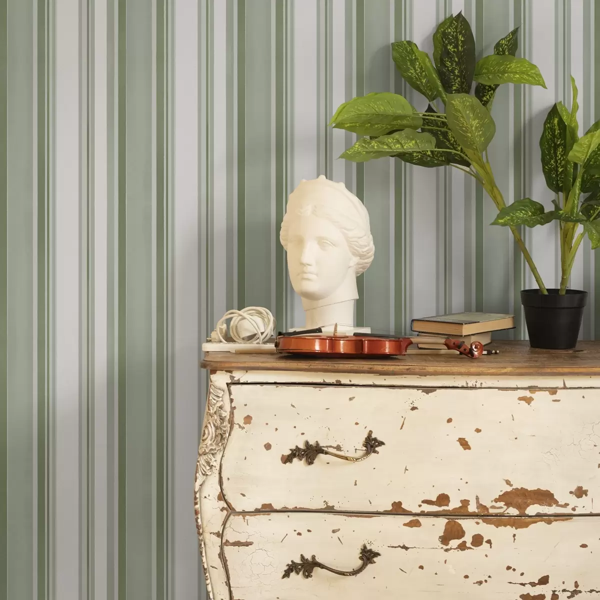 Tapetai Žalios juostos su baltais tarpais ir plonomis linijomis Nr. a00526
