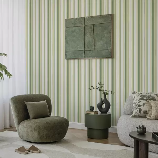 Tapetai Žalios ir smėlio spalvos dryžiai su geltonomis akcentinėmis linijomis Nr. a00531
