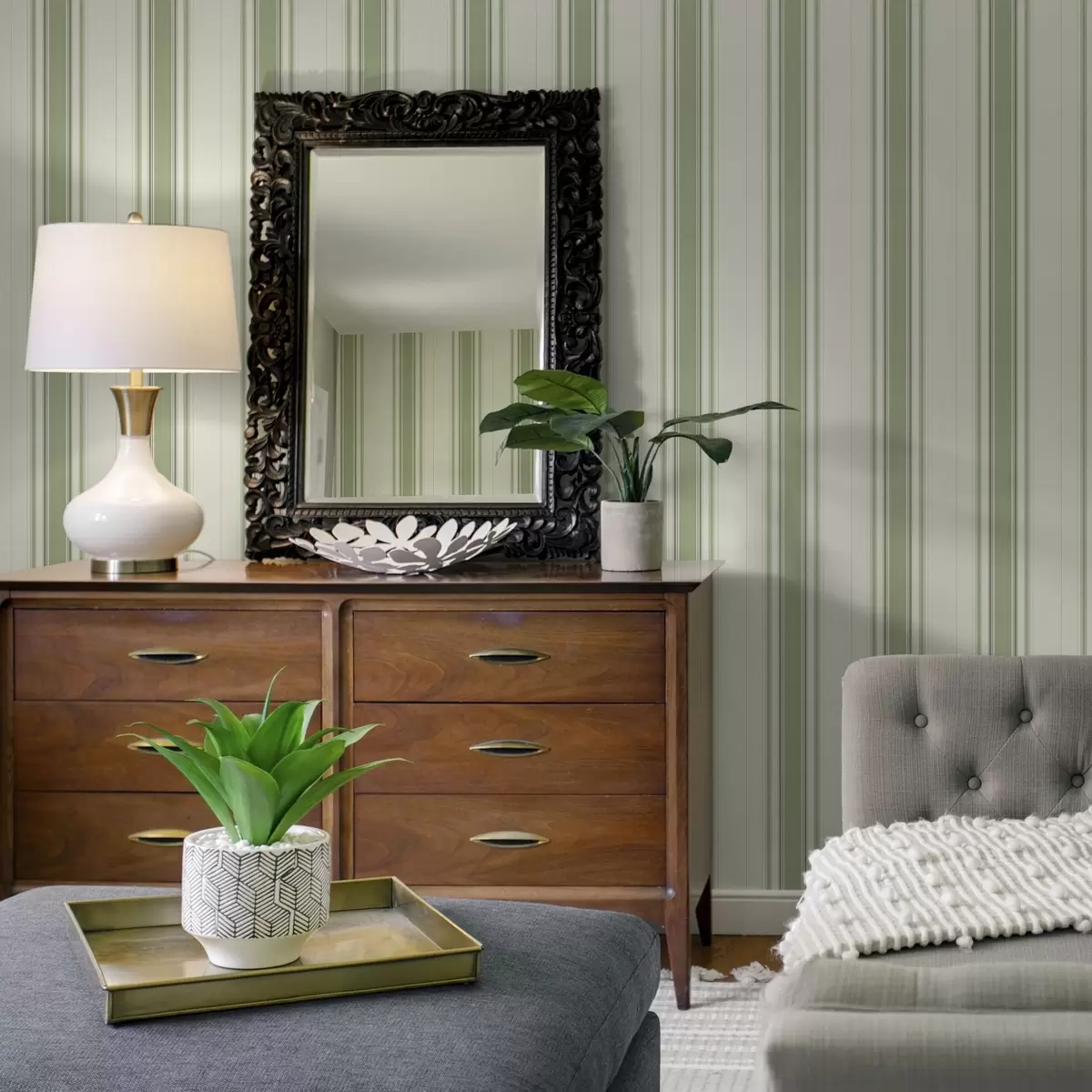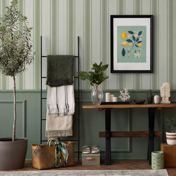 Tapetai Šviesus fonas su tamsiai žaliomis akcentinėmis juostelėmis Nr. a00562