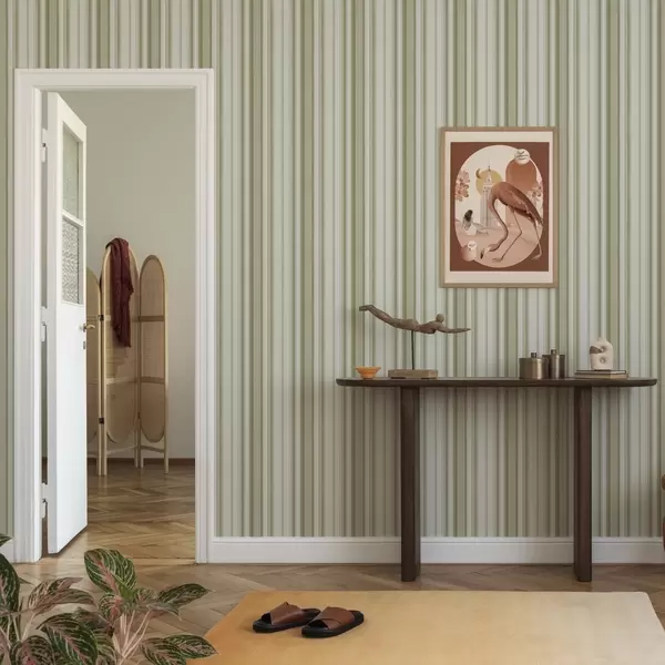 Tapetai Kreminis fonas su pilkai smėlio spalvos vertikaliomis juostomis Nr. a00564