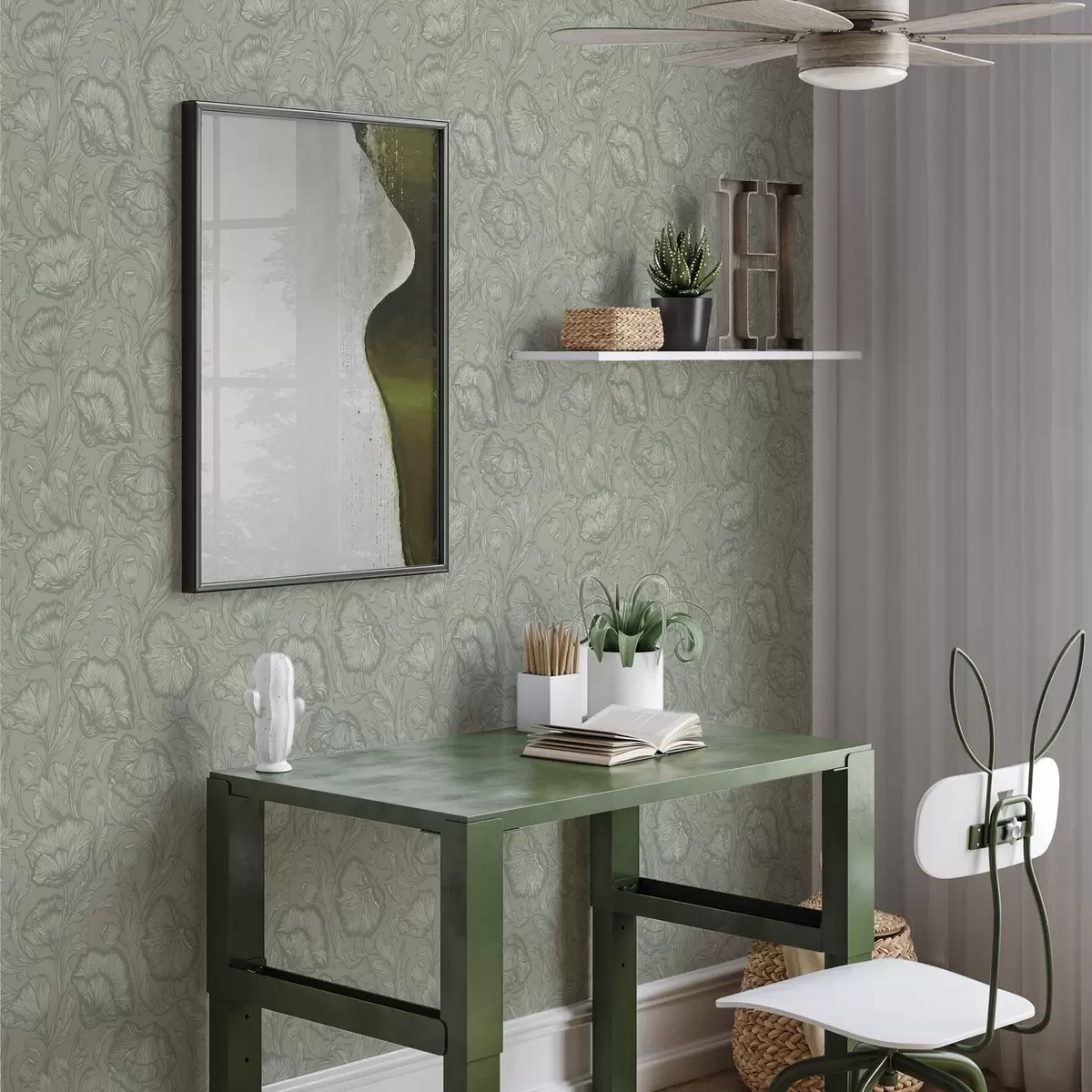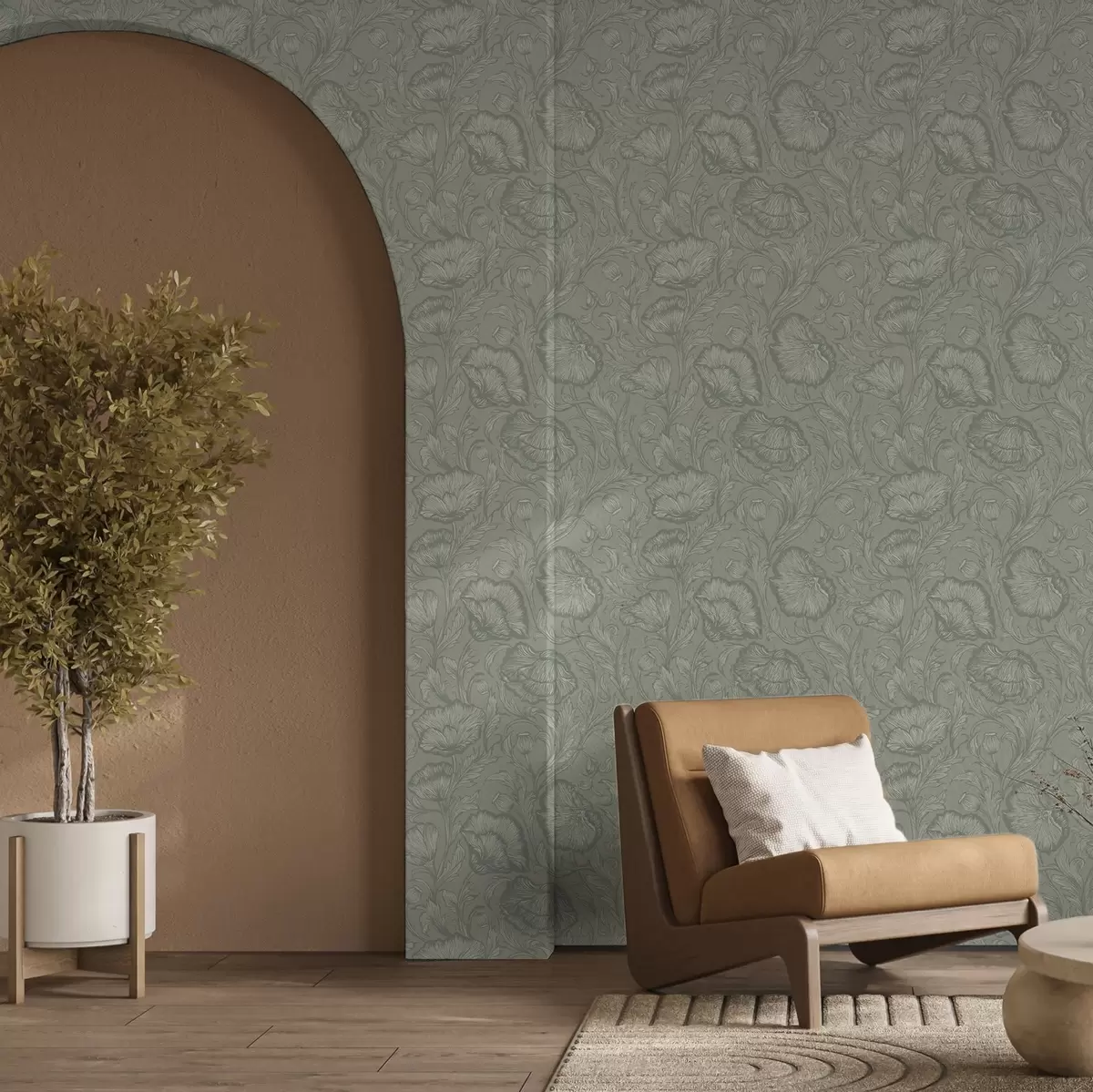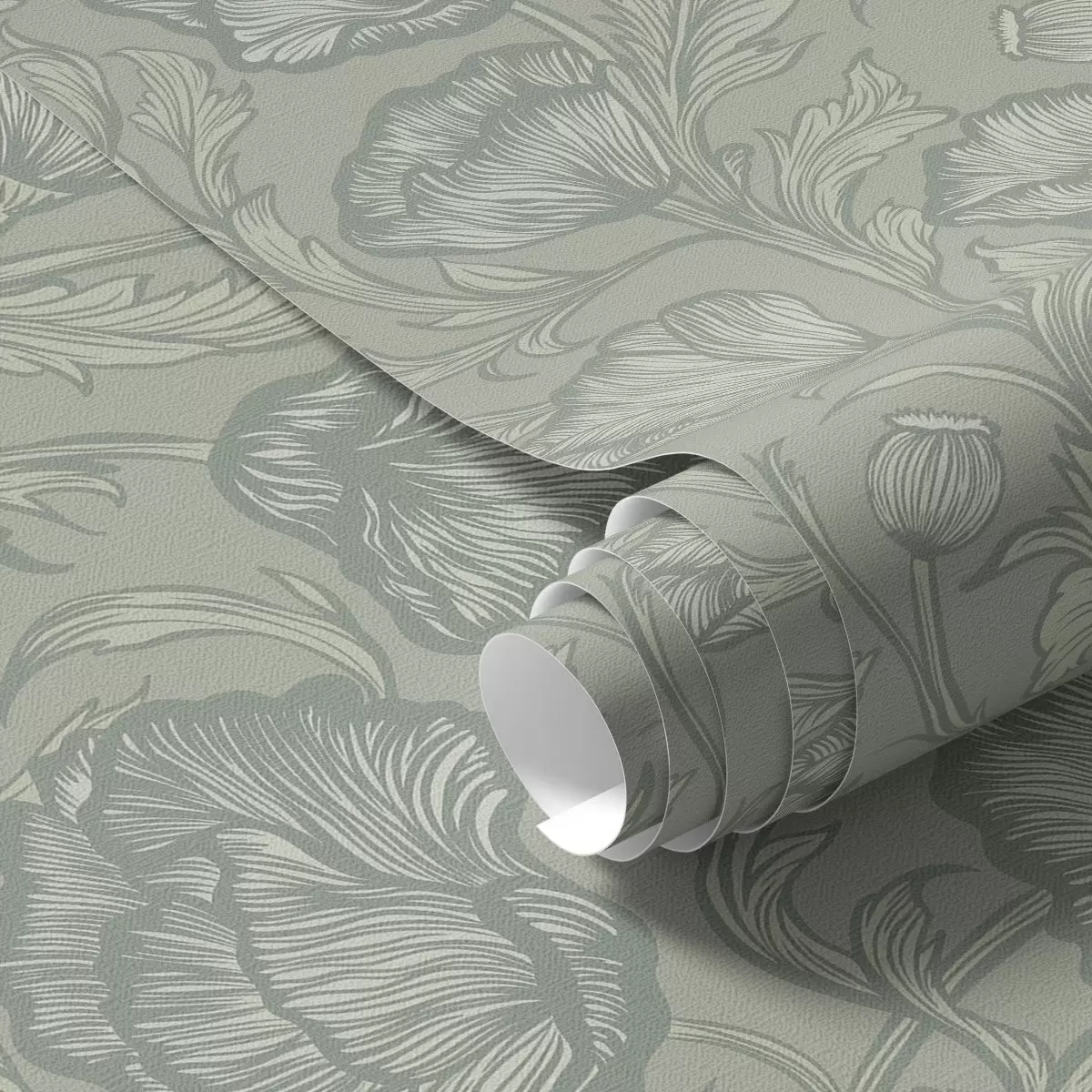 Tapetai Linijiniai aguonai ant pilkai žalios spalvos fono Nr. a00572v1