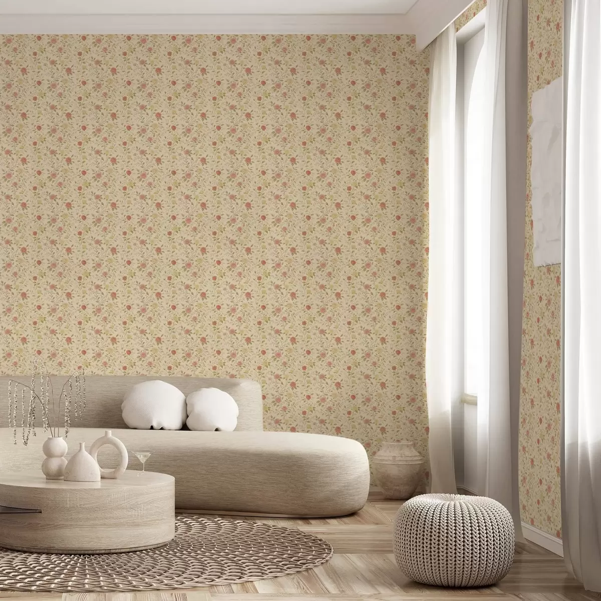 Tapetai Vintage rožės persikų ir geltonos spalvos ant kreminio fono Nr. a00577