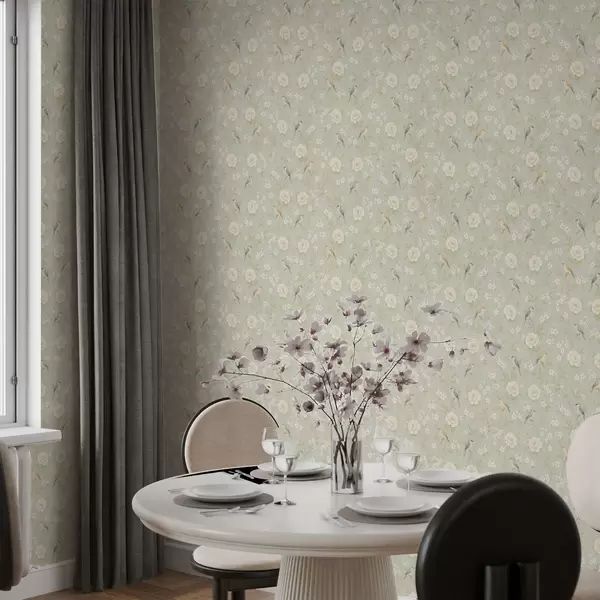 Tapetai Paukščiai tarp baltų žiedų ant pilkai žalios fono Nr. a00583