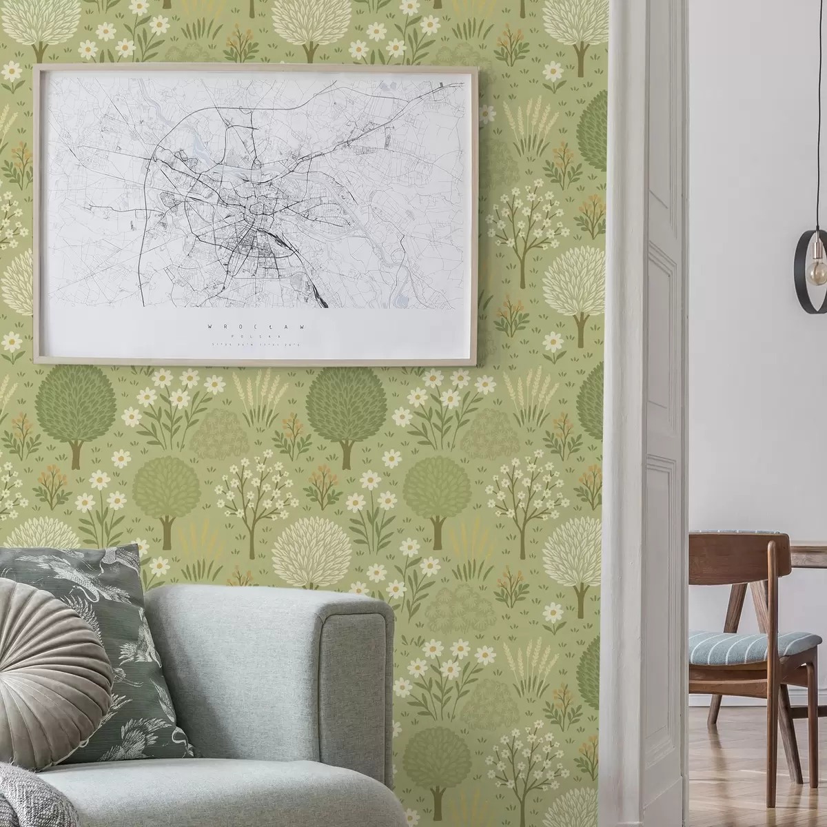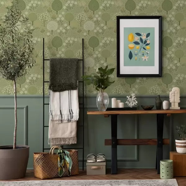 Tapetai Vaikų žaliasis sodas: medžiai, gėlės ir kviečiai Nr. a00586