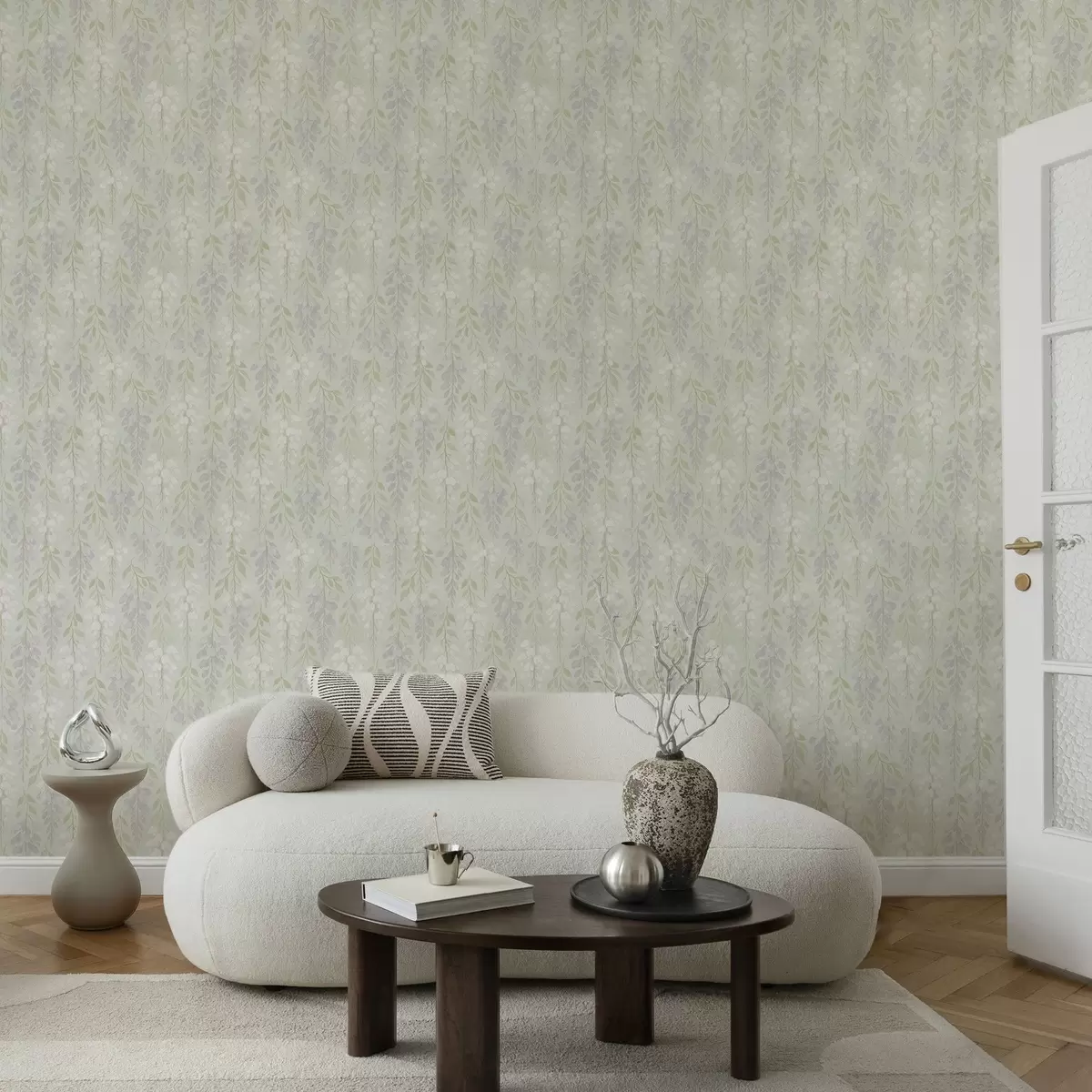 Tapetai Vijoklinė levandų gėlė ant mėtų žalios spalvos fono Nr. a00593