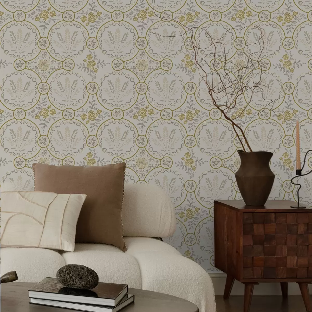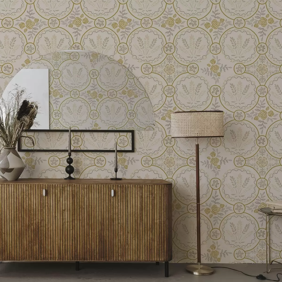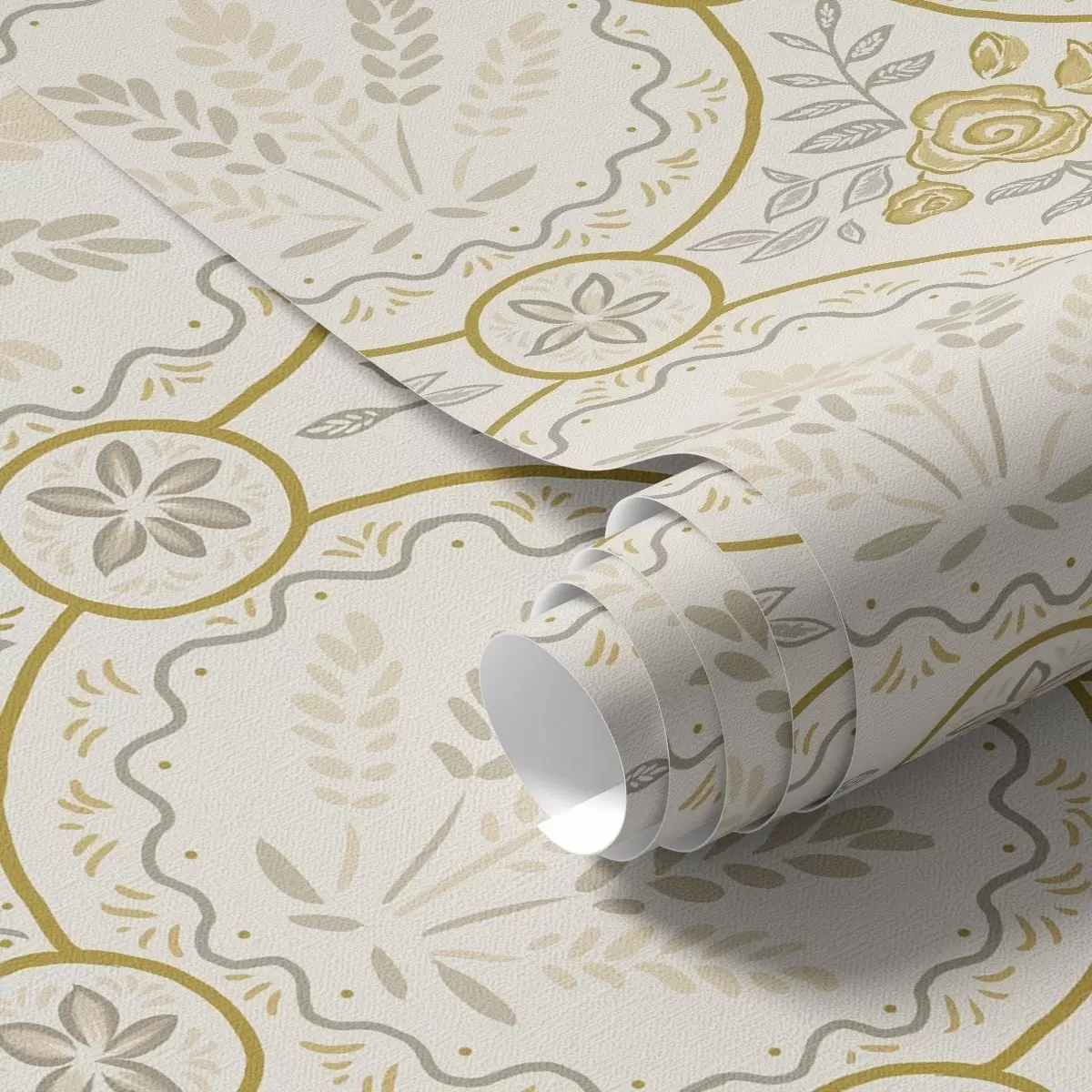 Tapetai Retro ornamentas su kviečiais ir rožėmis auksu Nr. a00595