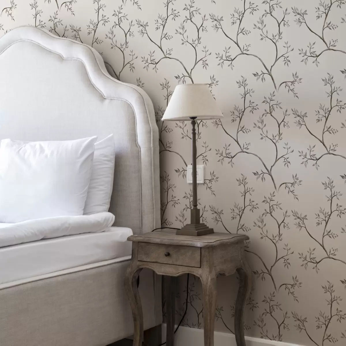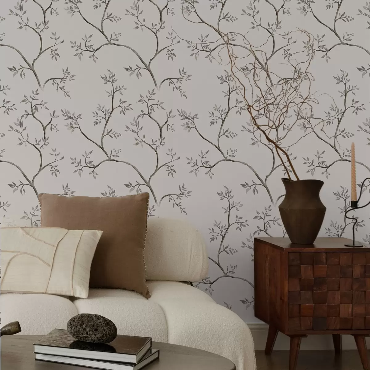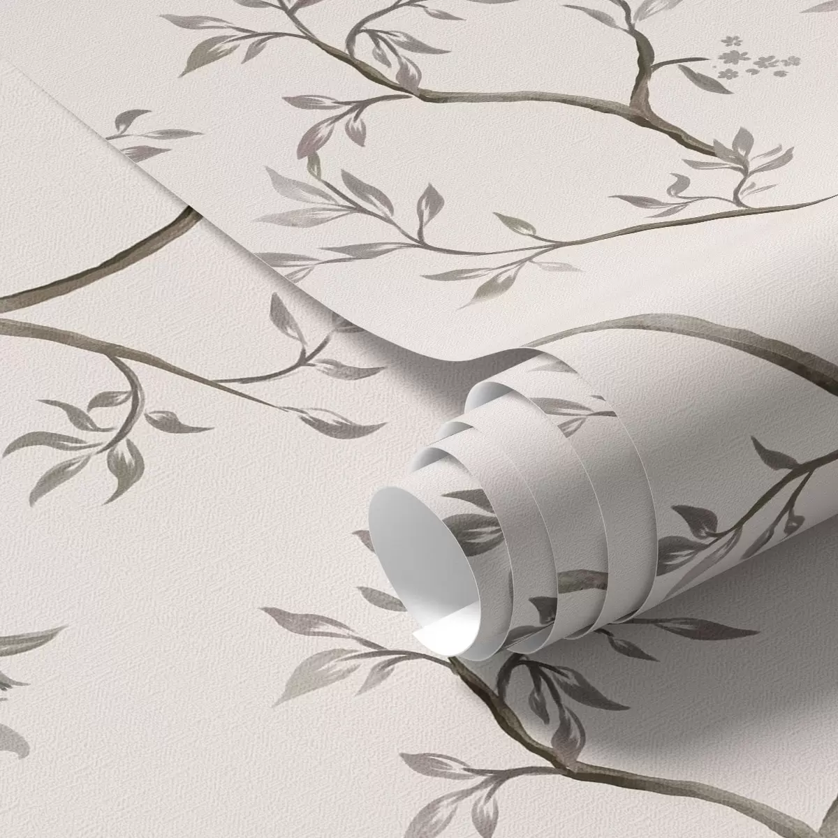 Tapetai Subtilūs lapoti šakos ant šilto kreminio fono Nr. a00597v1