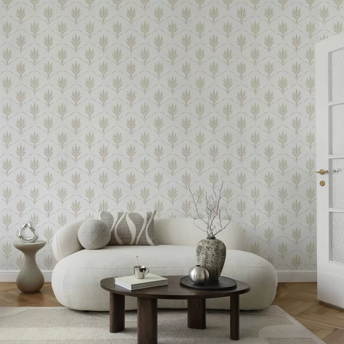 Tapetai Kviečiai arkiniame ornamente, švelnios pastelinės spalvos ant balto fono Nr. a00607v1