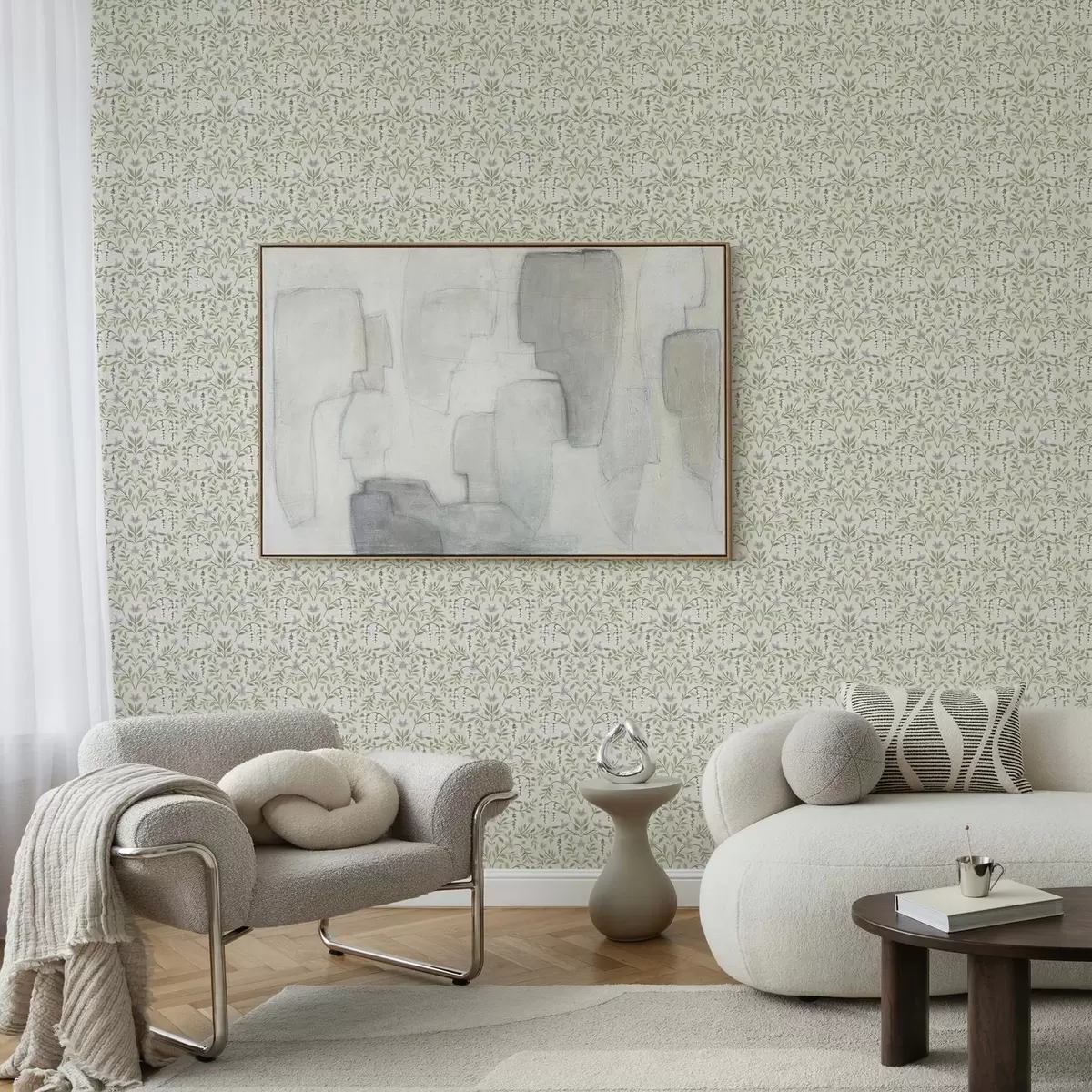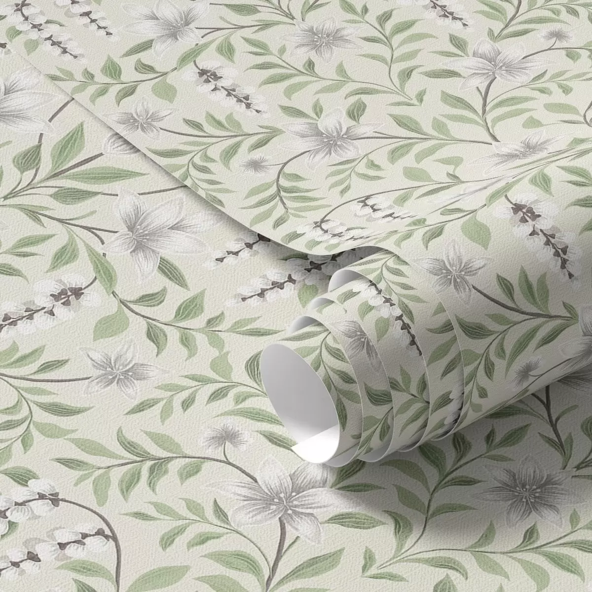Tapetai Šviesus vynmedžių ornamentas su baltomis gėlėmis, simetrija Nr. a00609
