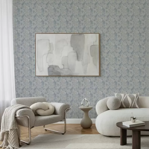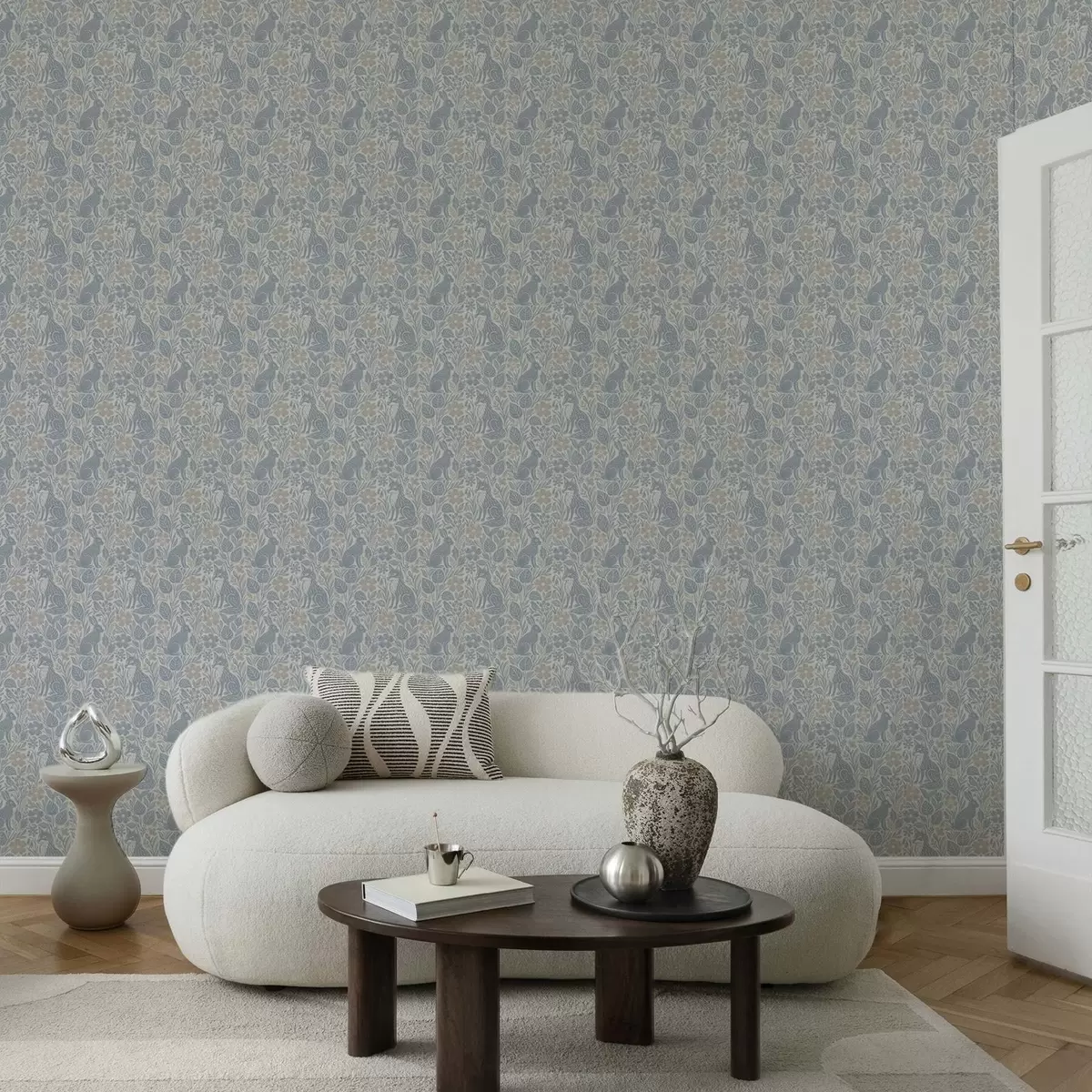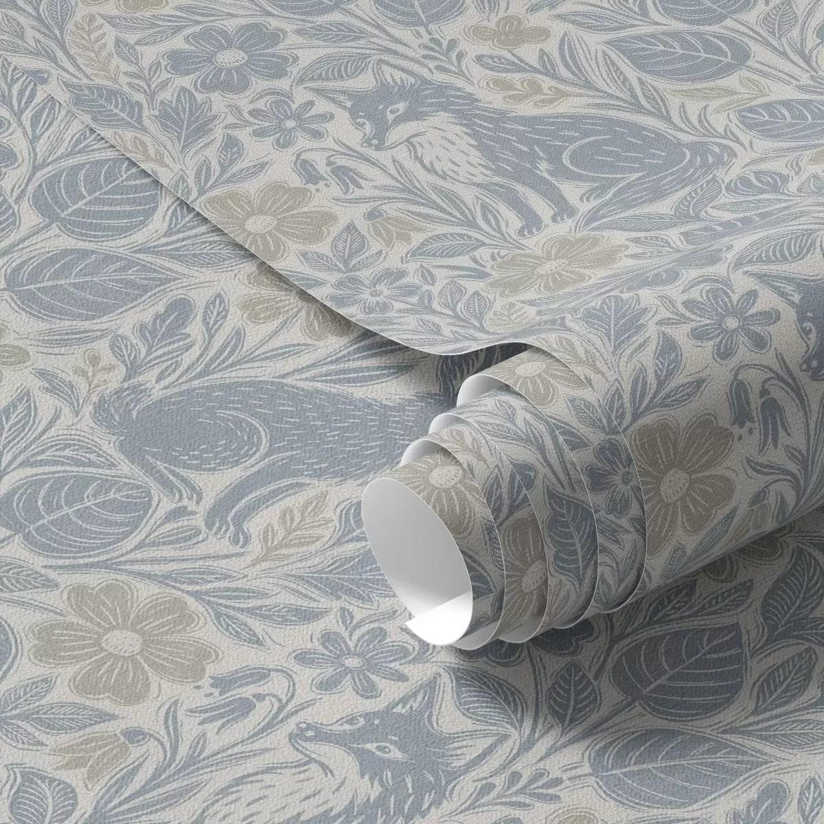 Tapetai Miško gyvūnai ir gėlės: lapė ir kiškis mėlynų atspalvių Nr. a00613