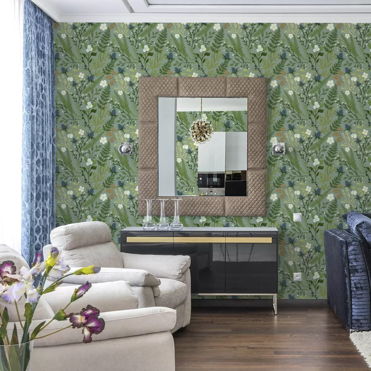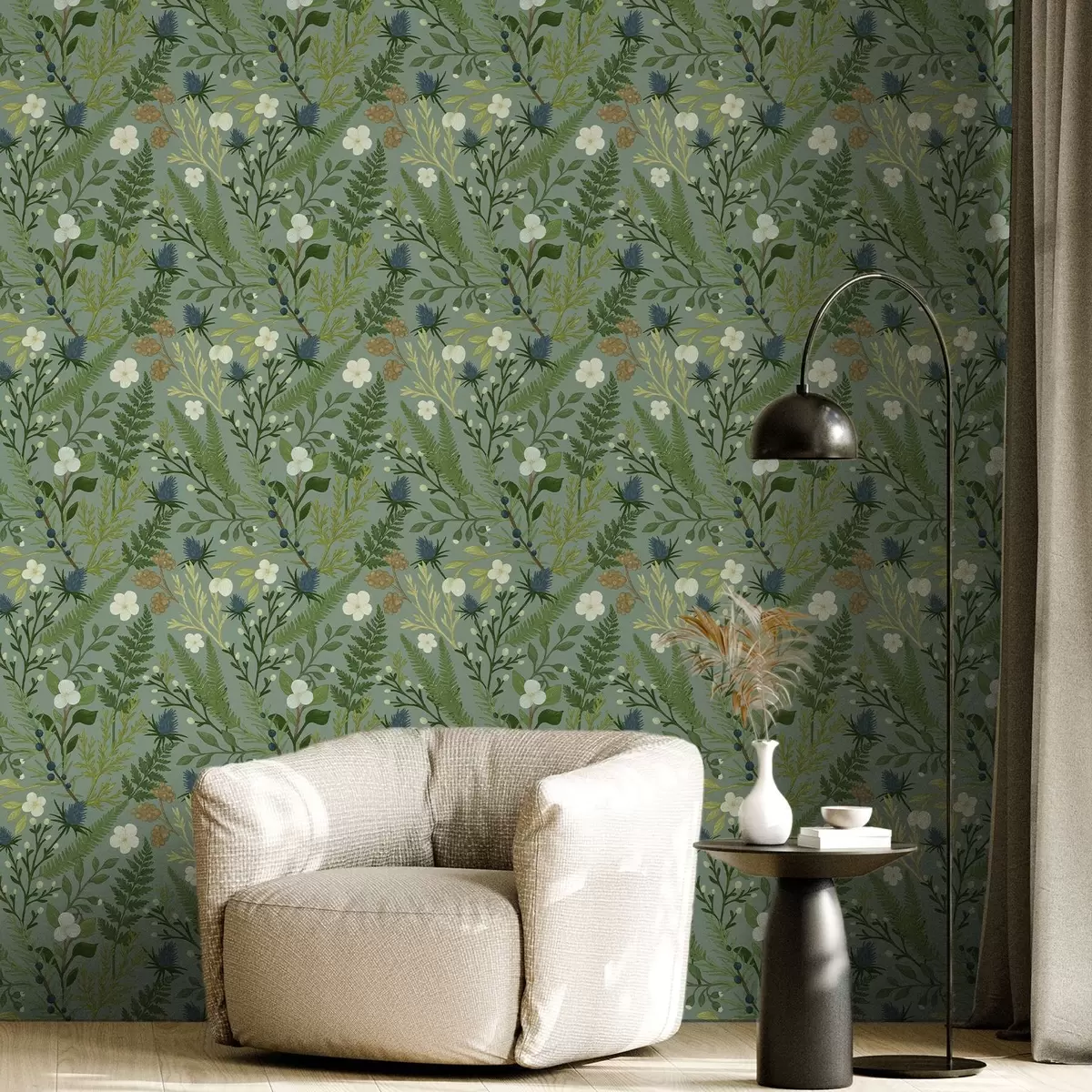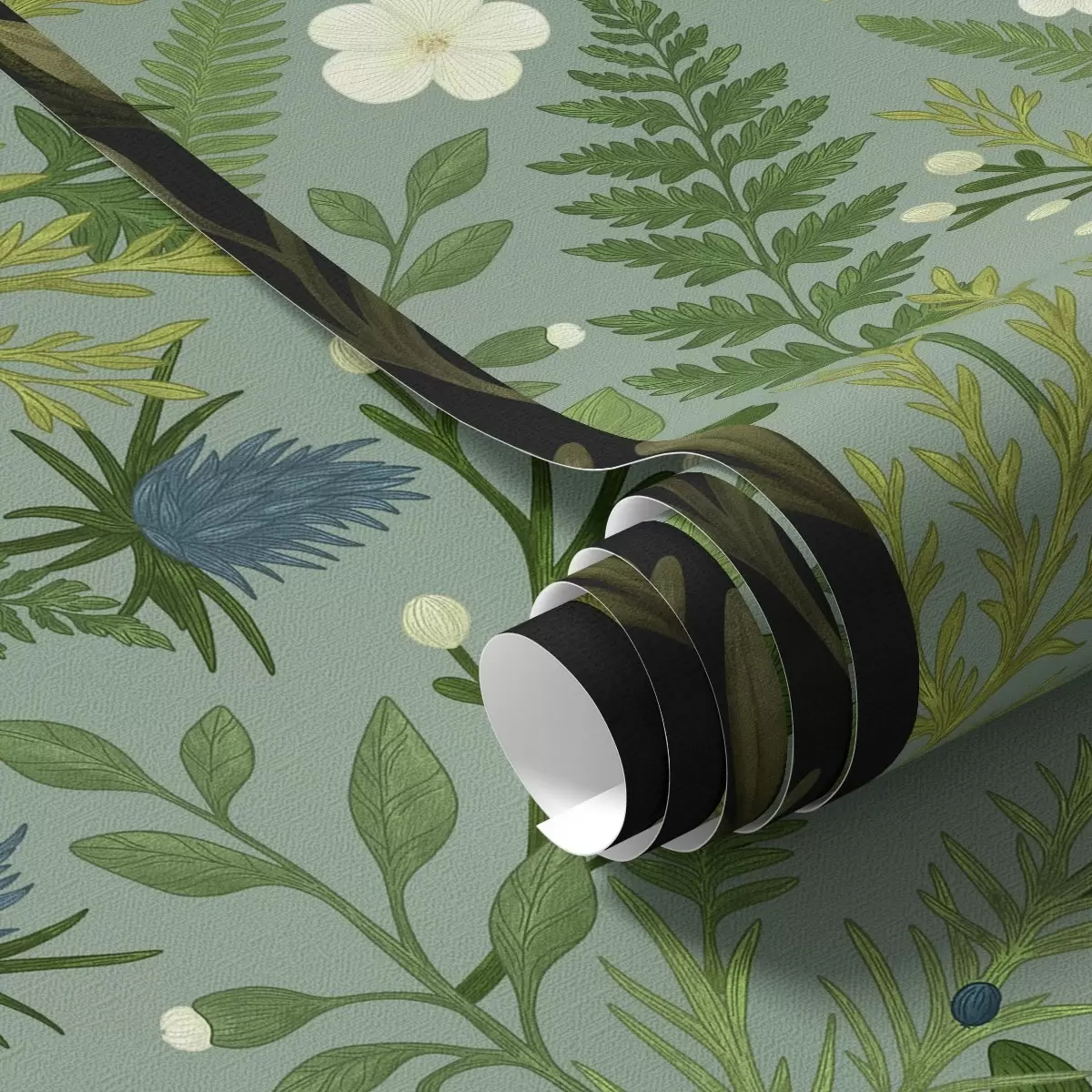 Tapetai Miško žolės, trūkažolės ir uogos ant mėtų fono Nr. a00621v1