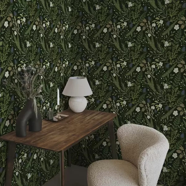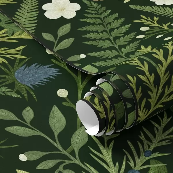 Tapetai Miško žolės ir uogos ant tamsiai žalios fono Nr. a00621v2