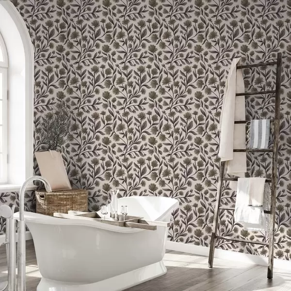 Tapetai Pilkos-alyvuogių atspalvių lauko gėlės ant kreminės spalvos fono Nr. a00623v1