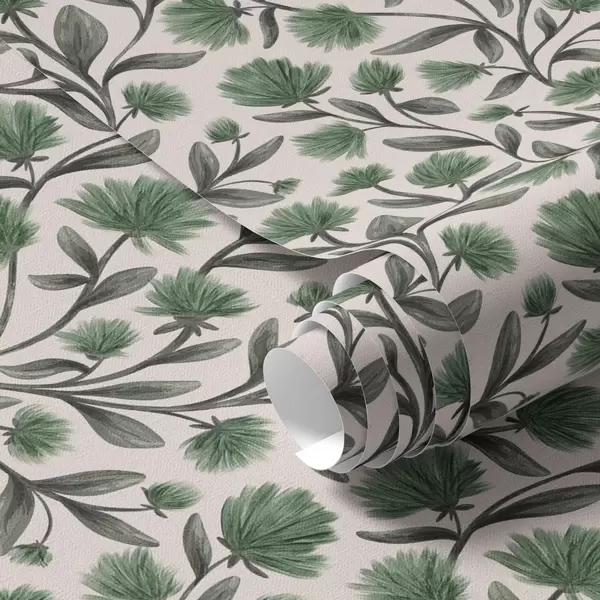 Tapetai Laukinės gėlės žalios spalvos paletėje ant kreminės spalvos fono Nr. a00623v3