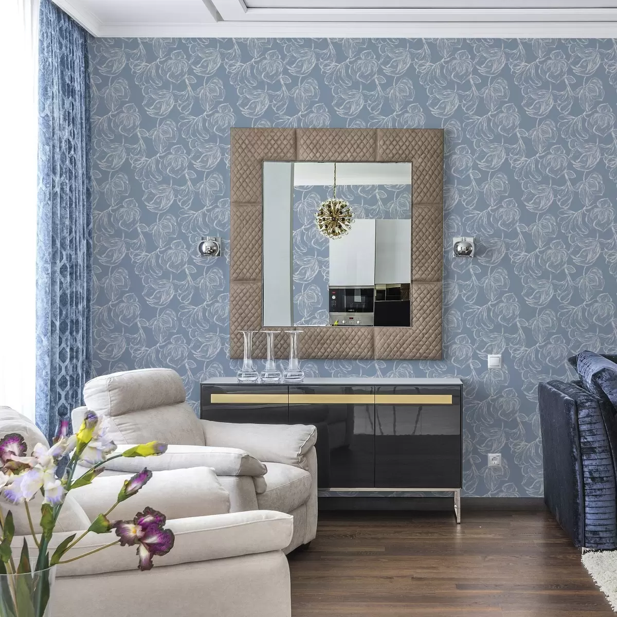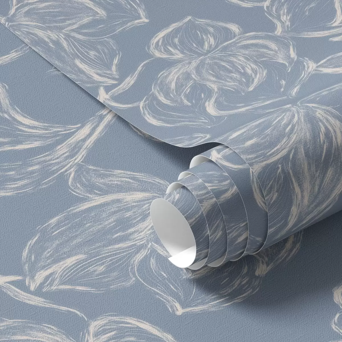 Tapetai Šviesiai mėlynas fonas su kreidinėmis gėlių kontūromis Nr. a00625v3