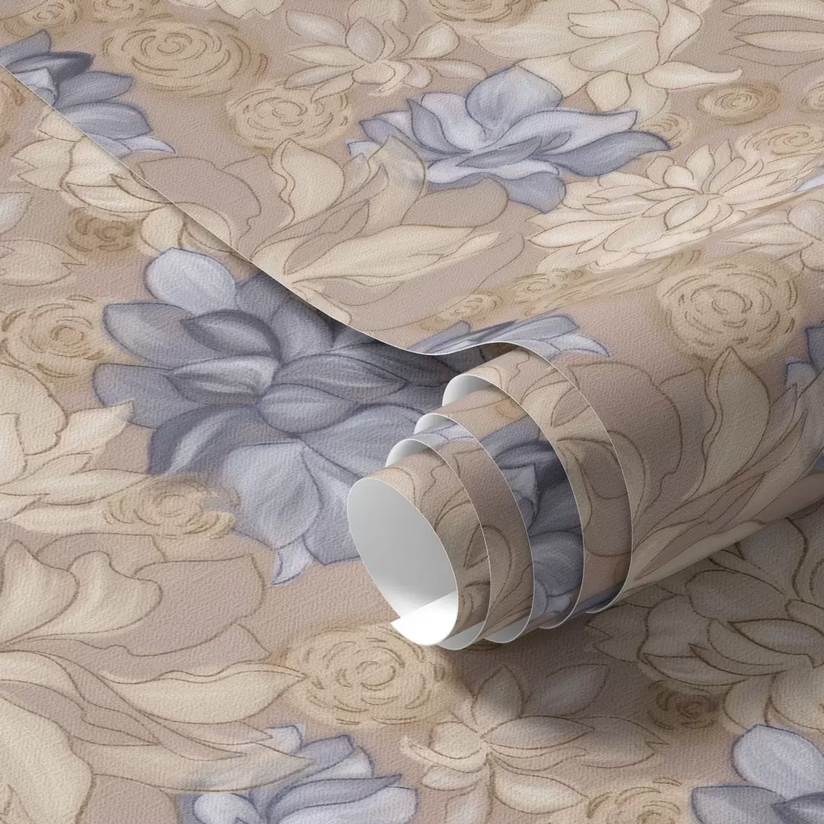 Tapetai Kreminės ir mėlynos gėlės ant šilto smėlio spalvos fono Nr. a00634v1