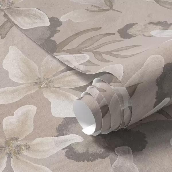 Tapetai Didelės smėlio spalvos gėlės su abstrakčiais akvarelės dėmelėmis Nr. a00635