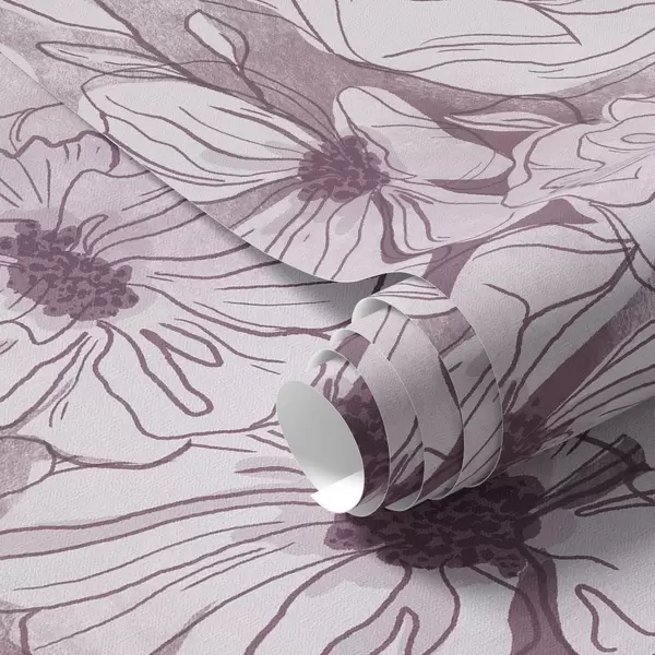 Tapetai Linijiniai žiedai vėsioje alyvinės-rožinės spalvų paletėje Nr. a00636v1