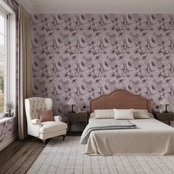 Tapetai Linijiniai žiedai vėsioje alyvinės-rožinės spalvų paletėje Nr. a00636v1