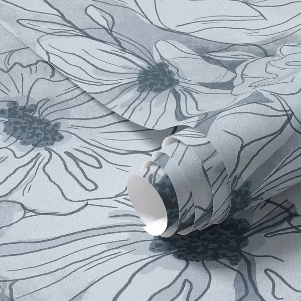 Tapetai Linijiniai žiedai vėsioje pilkai mėlynoje paletėje Nr. a00636v2