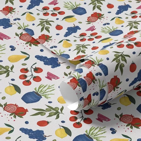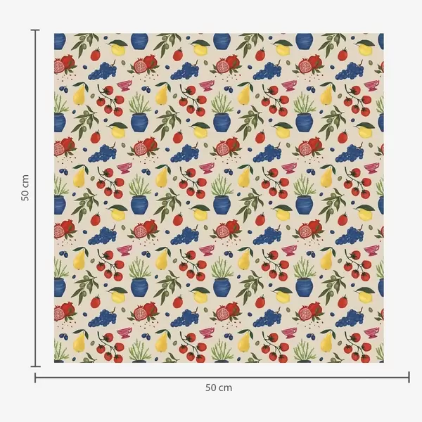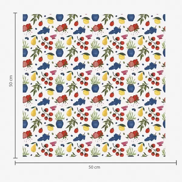 Tapetai Ryškus vaisių ir augalų raštas ant balto fono Nr. a00637v1
