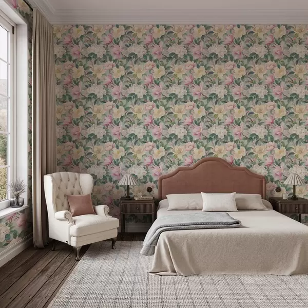 Tapetai Magnolijos ir balti žiedai ant mėtų pilkos spalvos fono Nr. a00644
