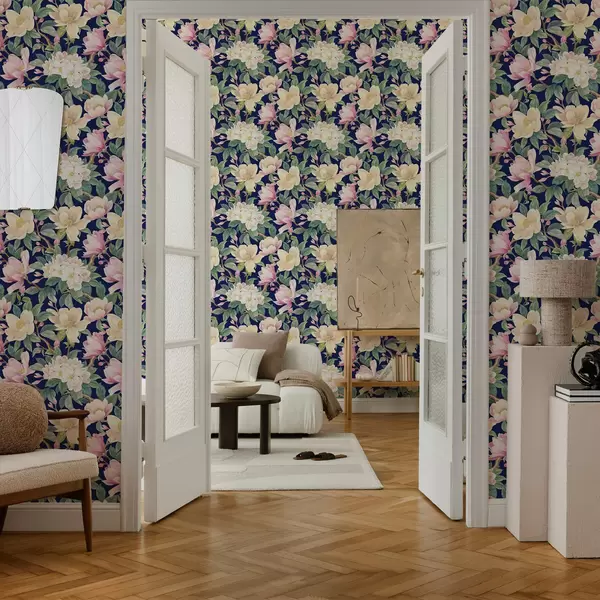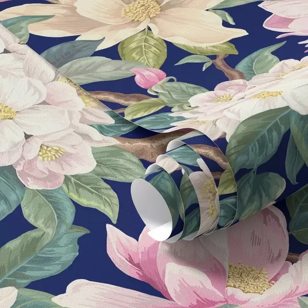 Tapetai Magnolijos ir pumpurai ant tamsiai mėlyno fono Nr. a00644v1