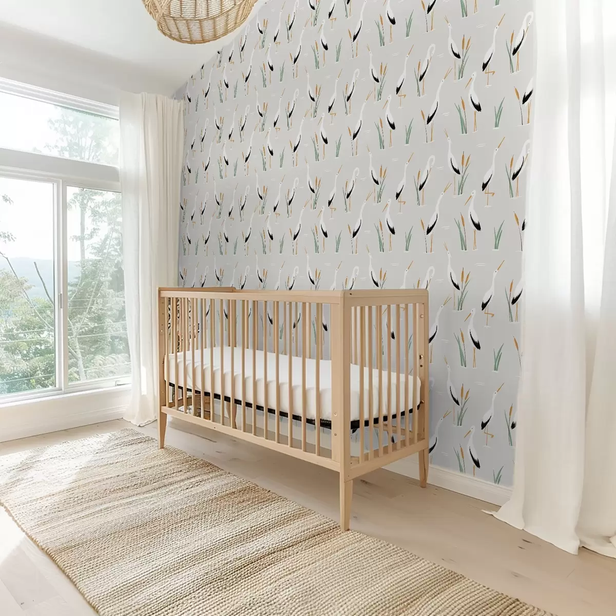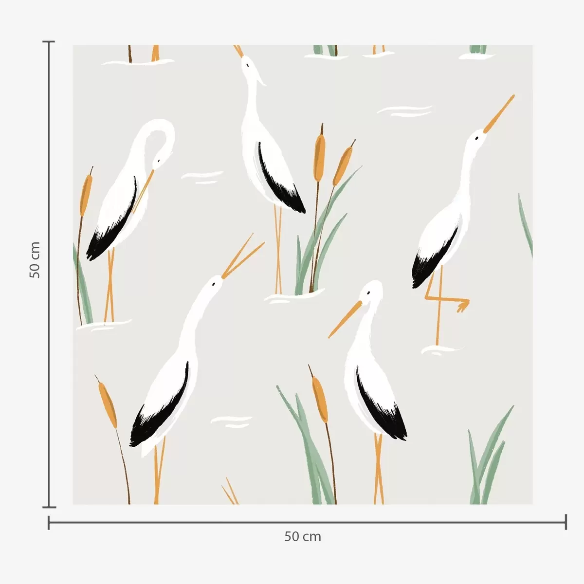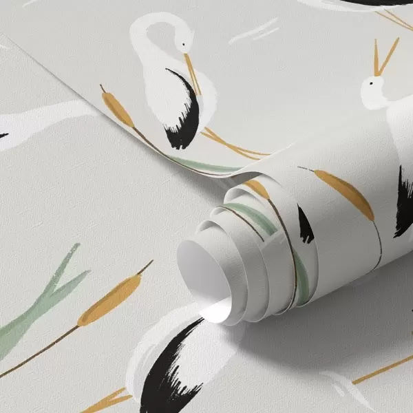 Tapetai Gervės tarp nendrių ant šviesiai pilko fono Nr. a00650