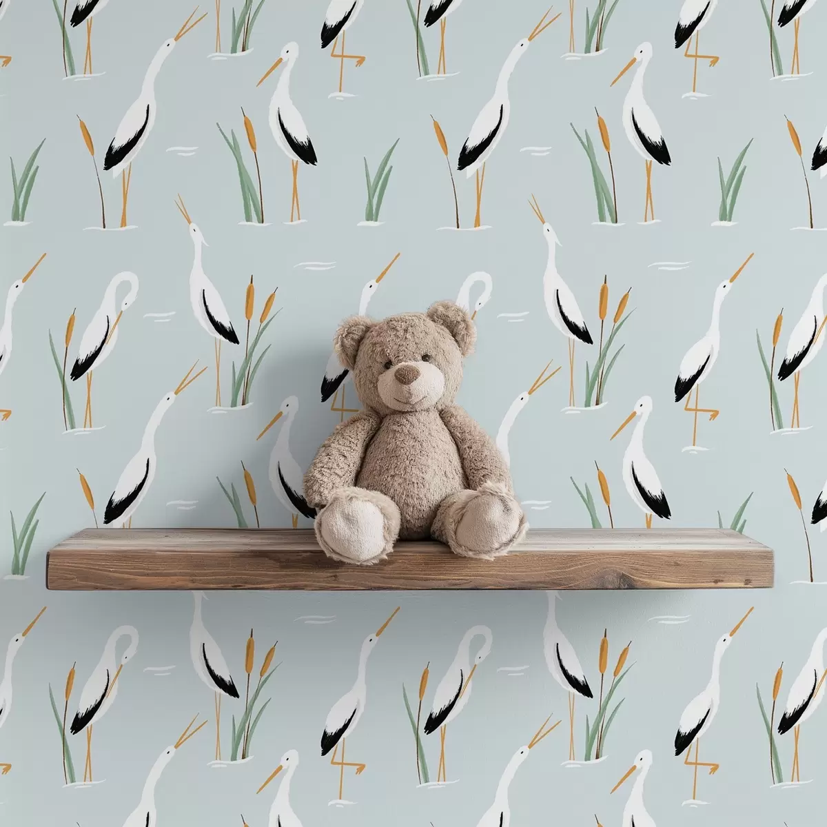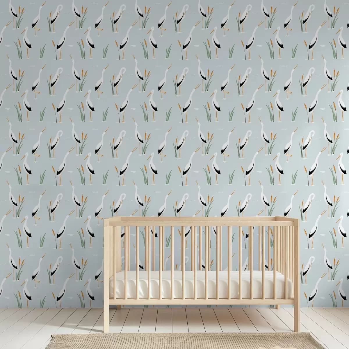 Tapetai Gervės tarp nendrių ant švelnaus mėlyno fono Nr. a00650v1