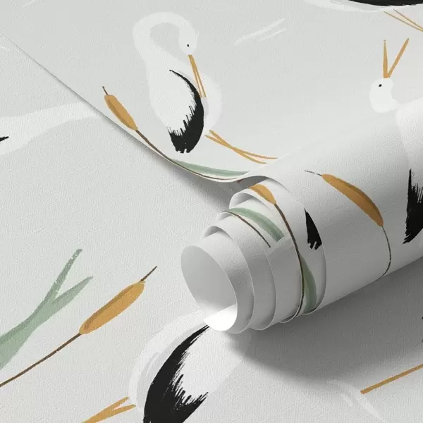 Tapetai Gervės tarp nendrių šviesiu fonu Nr. a00650v2