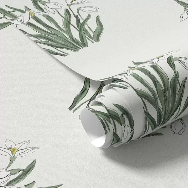 Tapetai Snieguolės su žaliais lapais ant šviesiai pilko fono Nr. a00651v1