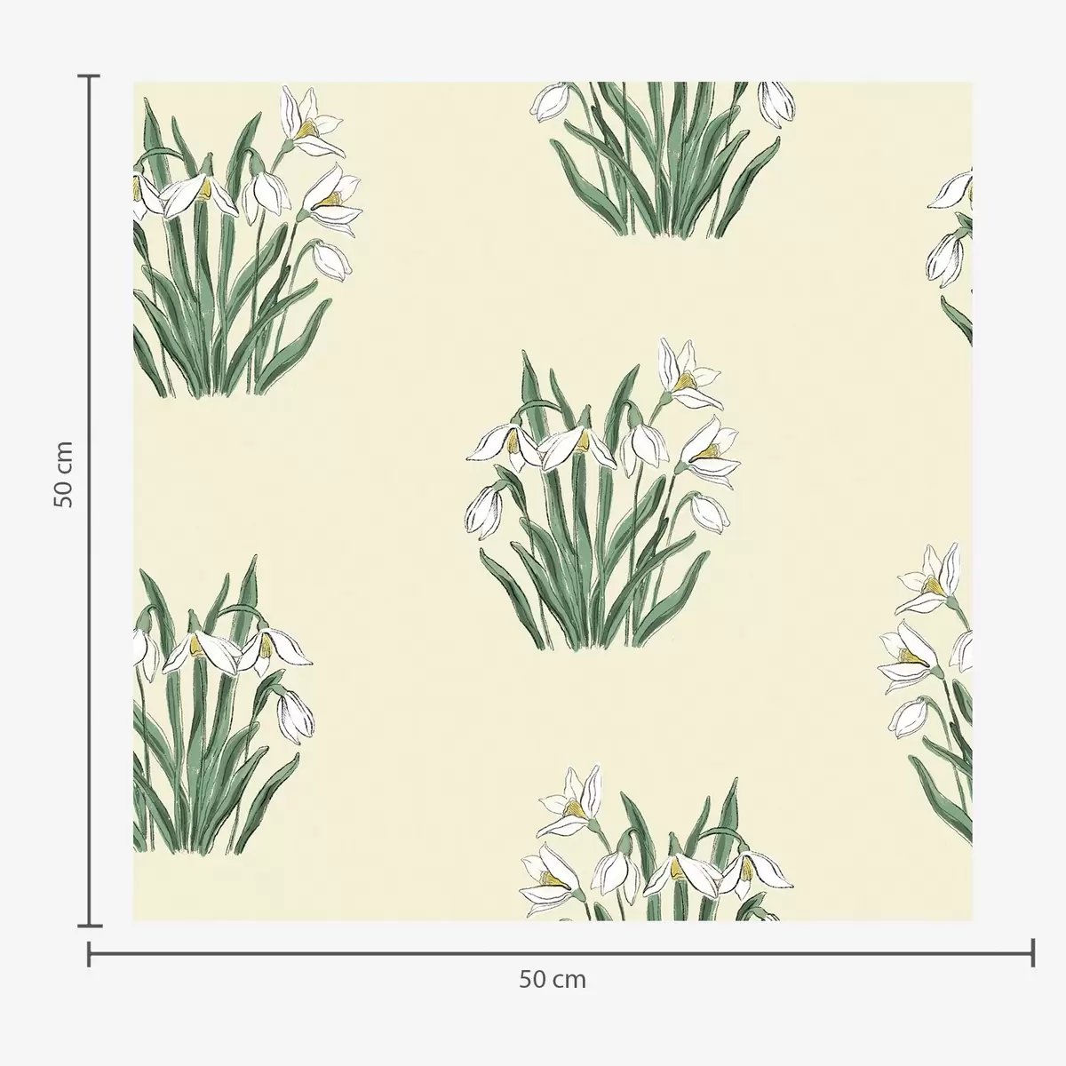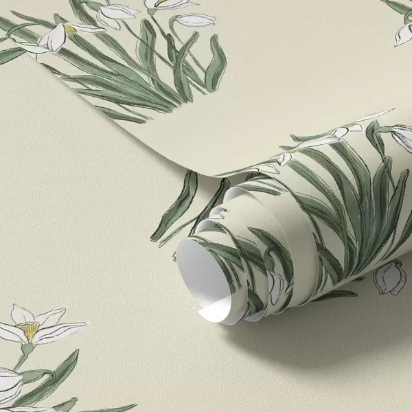 Tapetai Snieguolės su žaliais lapais ant kreminės spalvos fono Nr. a00651v2