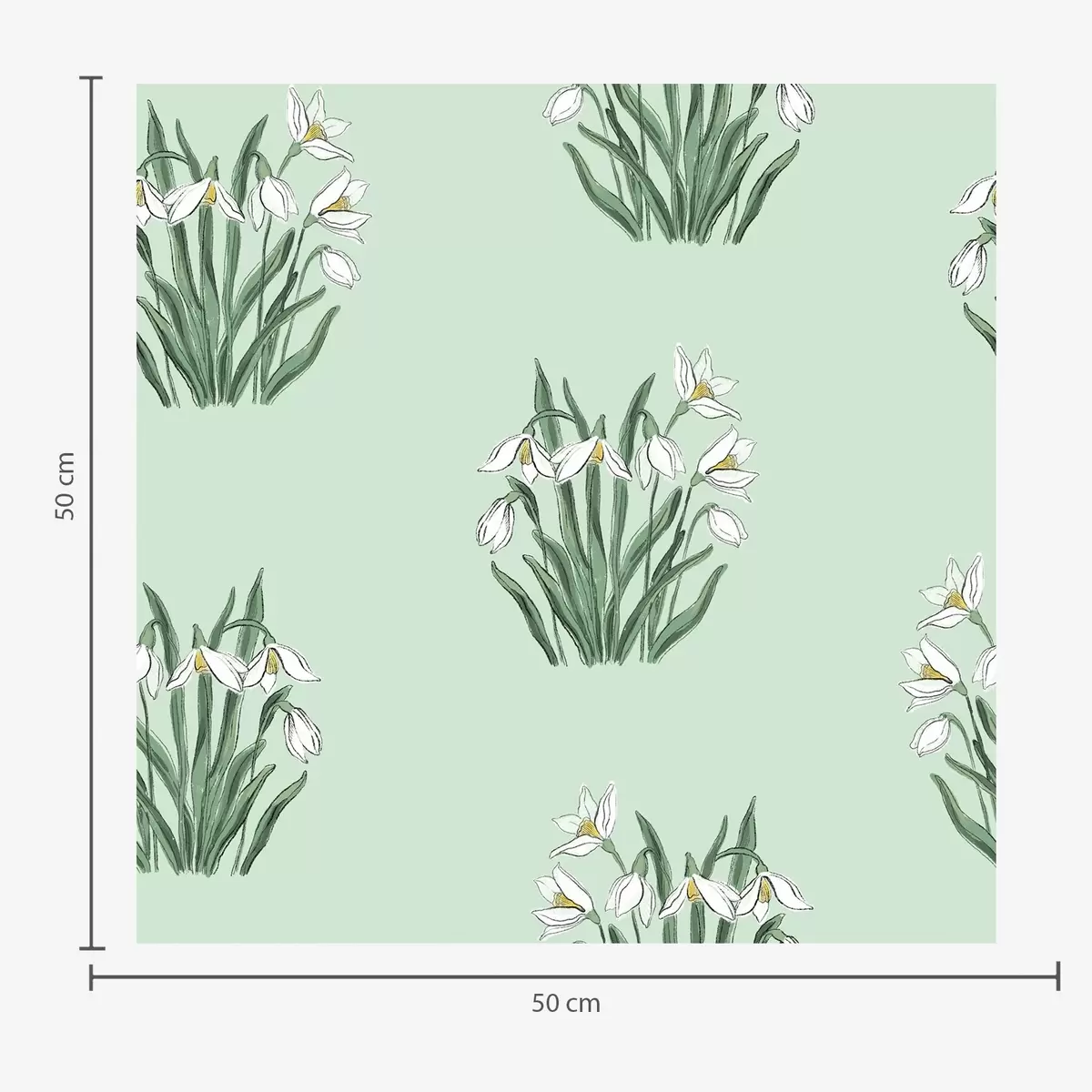 Tapetai Snieguolės su žaliais lapais ant šilto geltono fono Nr. a00651v3